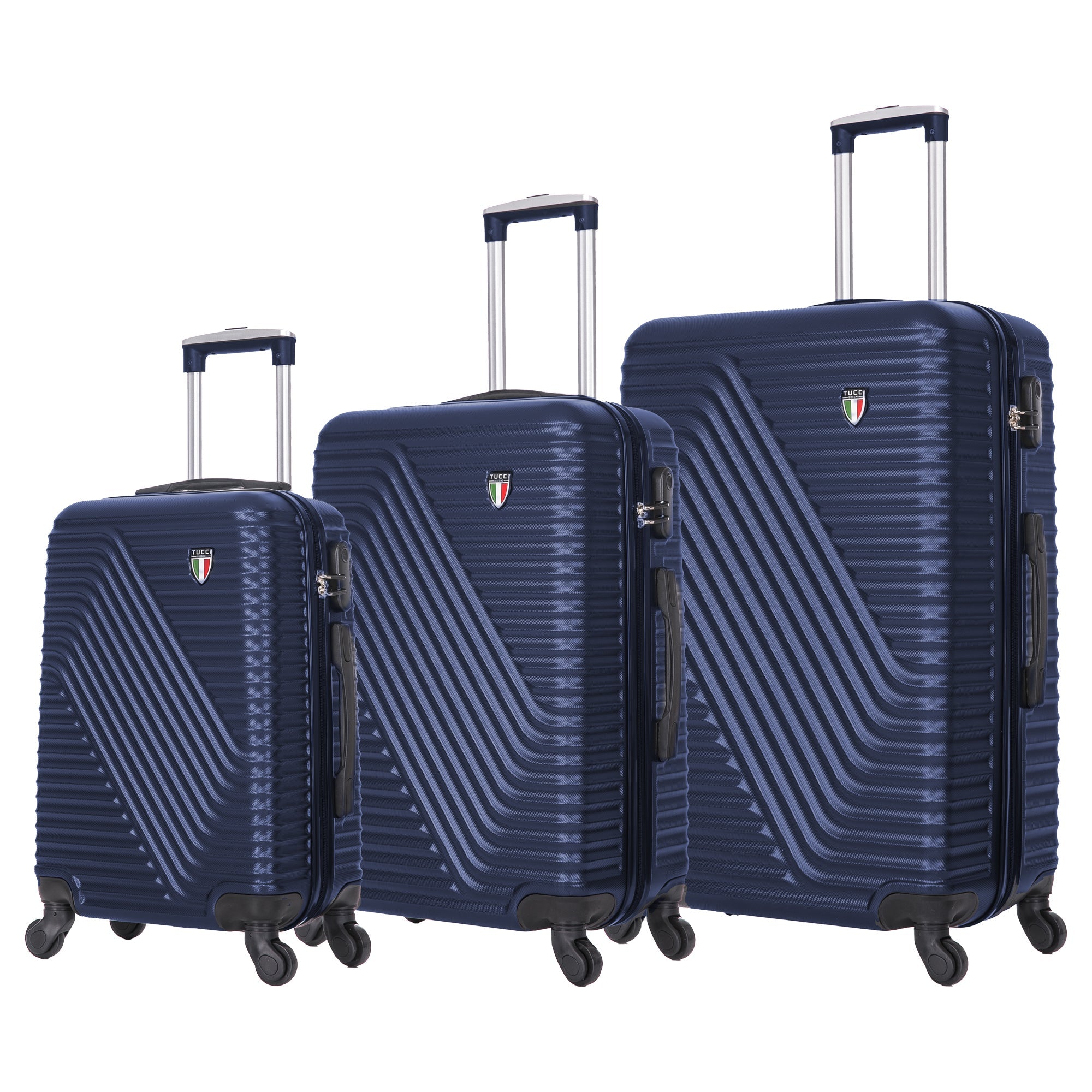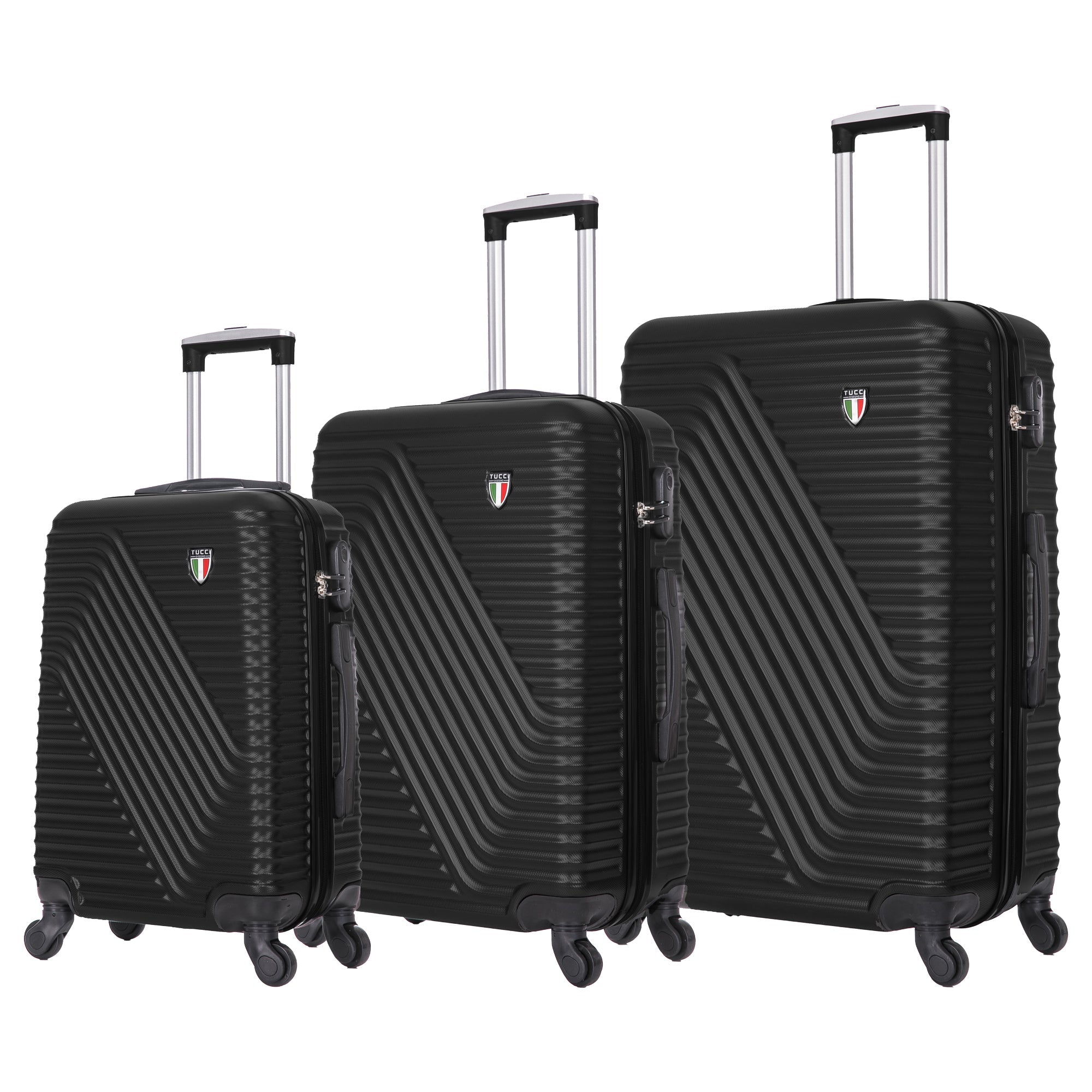 Transform every trip into a first-class experience with the TUCCI Italy TRAVOLA 3-Piece Hardside Luggage Set. This premium luggage collection provides luxury features and deluxe interiors that ensure practicality meets sophistication for discerning travelers. The TRAVOLA set elevates your travel experience with three perfectly sized pieces: 20" carry-on, 24" medium, and 28" large suitcases that handle everything from overnight stays to extended vacations. Each features an anti-scratch hardshell exterior that offers superior protection while maintaining an elegant, polished appearance that stands out in any travel setting. Inside, thoughtfully designed organizational compartments make packing systematic and luxurious. Security is enhanced with built-in combination locks, while Glide-Tech dual wheels provide smooth, quiet mobility that feels premium. Comfortable soft jelly handle grips add to the elevated experience, and the entire TUCCI Italy TRAVOLA collection comes with a 10-year limited global warranty. Travel gear that makes every journey feel special.